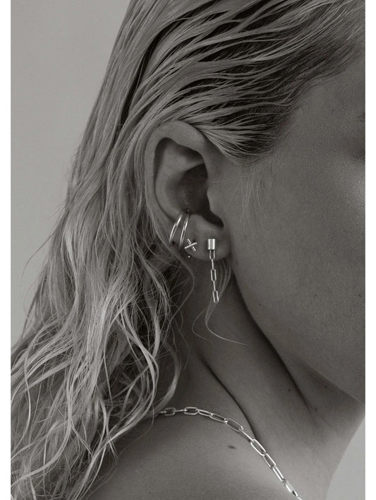 Silver Pin Up Threader Chain Earrings – Modern Elegant Design