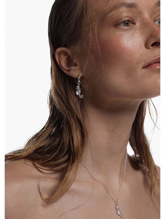 Silver Sea Horse Midi Hoop Earrings – Ocean Inspired Design